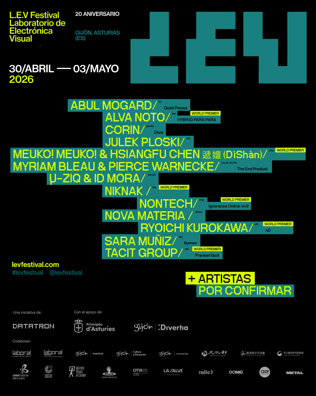​​L.E.V. FESTIVAL ANUNCIA LOS PRIMEROS NOMBRES PARA SU 20ª EDICIÓN, DEL 30 DE ABRIL AL 3 DE MAYO EN GIJÓN